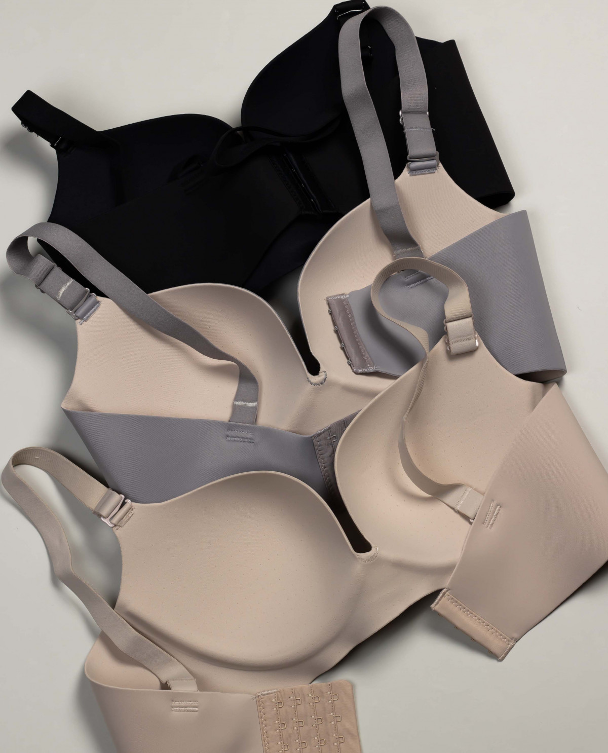 Brassier de látex, bandas extra anchas. Broche x4 ganchos. Sin aros, sin costuras. No se marca en la ropa.