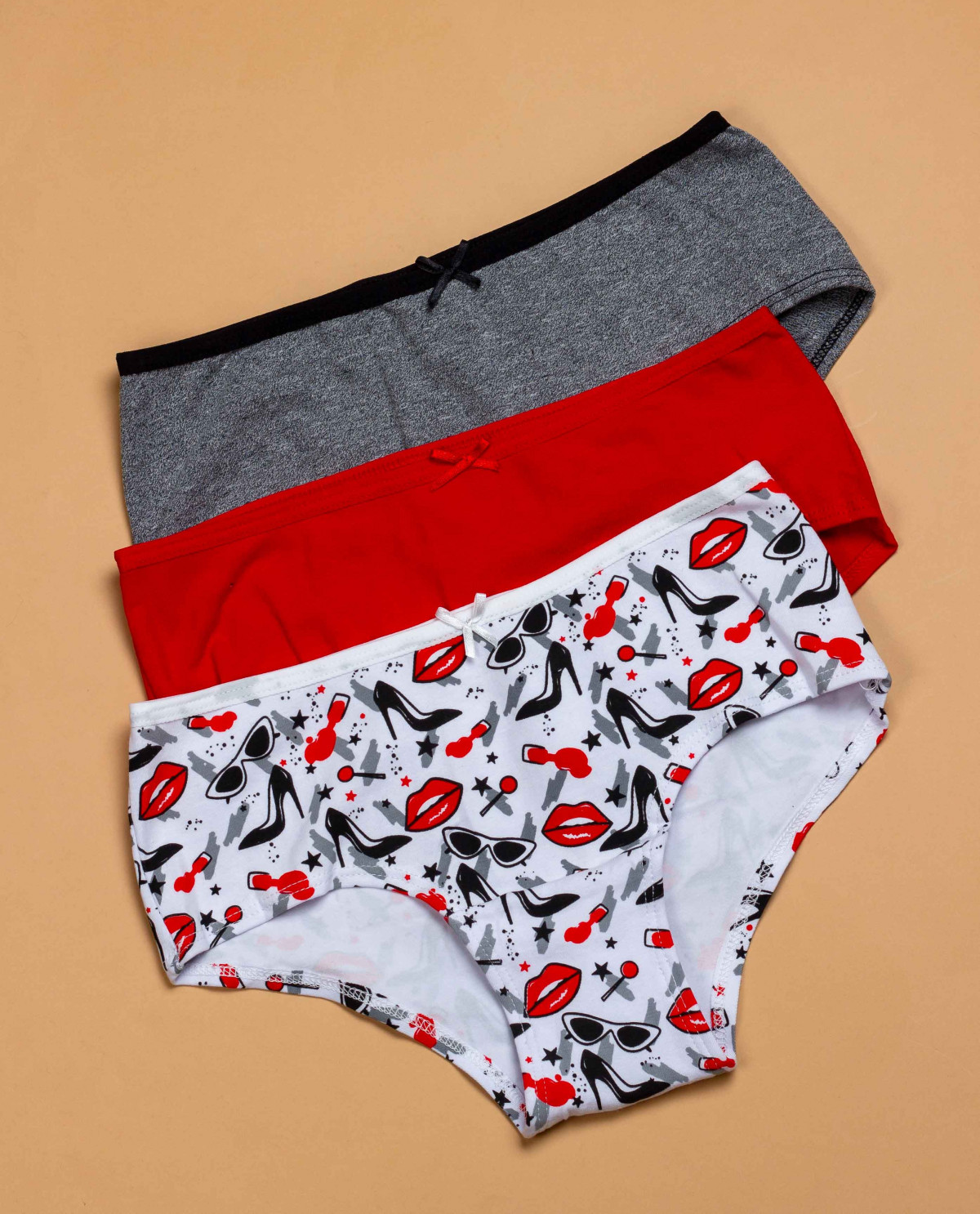 Paquete de 3unds. de hipster de algodón elasticado PeterPan, tal cual los diseños que puede ver en las fotografías. Elásticos delgados. El precio es por las tres unidades.